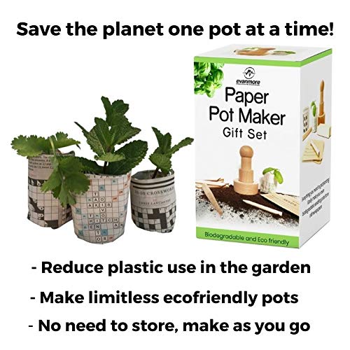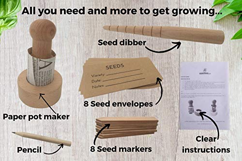 • PAPER POT MAKER & SEEDLING STARTER KIT – everything you need & more in one box to get planting. Make your own biodegradable paper plant pots from recycled newspaper. Also includes dibber, seed markers, envelopes, pencil & instructions