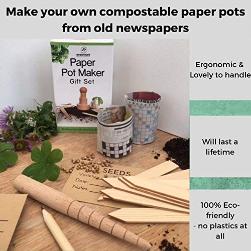 • PAPER POT MAKER & SEEDLING STARTER KIT - everything you need & more in one box to get planting. Make your own biodegradable paper plant pots from recycled newspaper. Also includes dibber, seed markers, envelopes, pencil & instructions