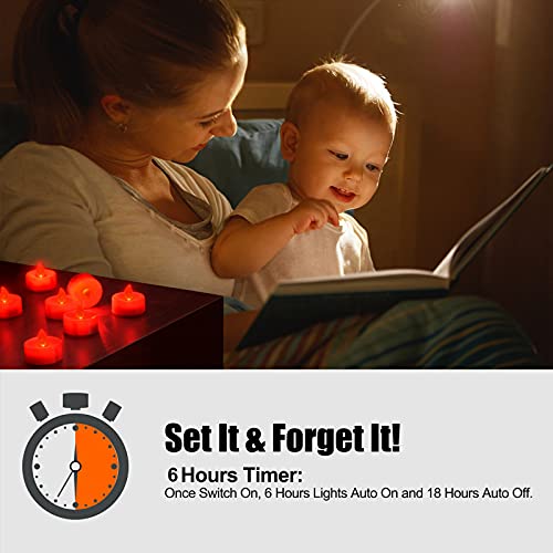 - 【Built-in 6H Auto Timer】– Once You Turn on These Battery Tea Lights, They Will Be Off Automatically After 6 Hours Working, then Auto on after 18 Hours, 24 Hours Per Cycle. It Is Really Handy and No Need to Turn Them on/off in Person.