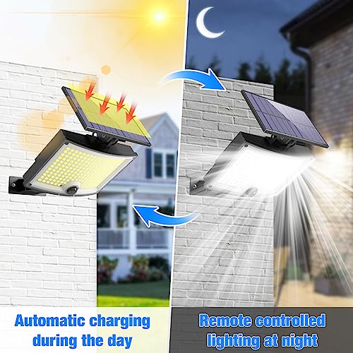 Peasur Solar Lights Outdoor Garden, 202 LED Solar Motion Sensor Security Lights with 3 Lighting Modes Wireless Solar Wall Lights Waterproof Solar
