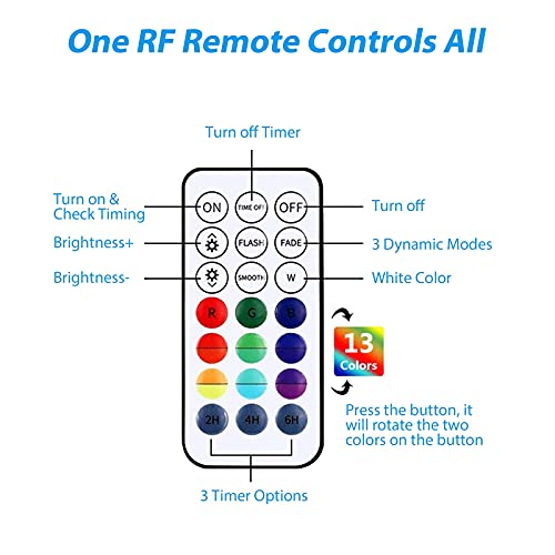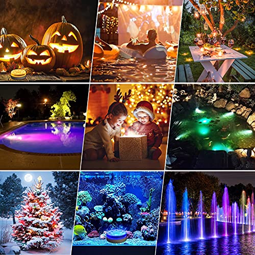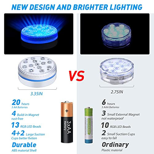 - 【Brighter LED&Better Magnetic submersible lights】 Dimmable Submersible Pond Lights, 13 high resolution RGB light beads, 16 different colors, 5 brightness settings, 3 Dynamic Modes(Flash/Fade/Smooth), 4 Rust-free Strong Build-in Magnets, a good ambiance setting decoration, a decor lights up inside and outside of your house, brighten your daily life.