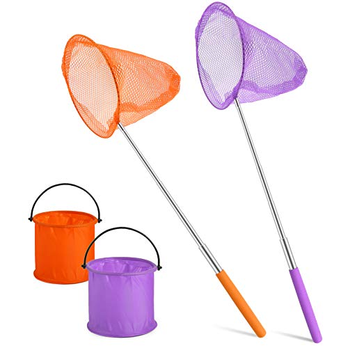 • 2 Value Pack: 2Packs different color telescopic butterfly nets (Purple and Orange), 2 Pack foldable water bucket (Purple and Orange). Share with your best friend. Let's get close to nature with friend and children