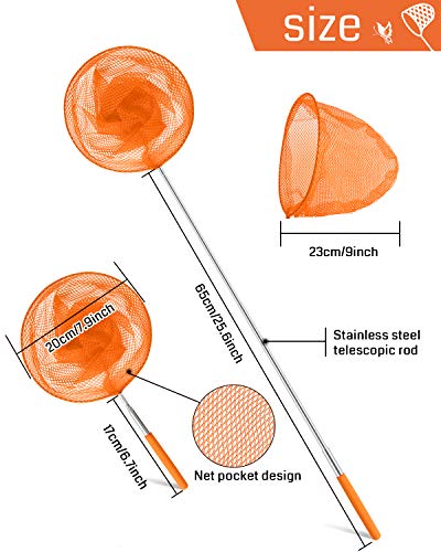 • Insect Catch Kit: The butterfly net is made of superior quality stainless steel telescopic pole, durable and flexible; Soft and anti-slip rubber grip, comfortable for children to hold; Nylon material mesh net which with the right size and the insects won't run away easily