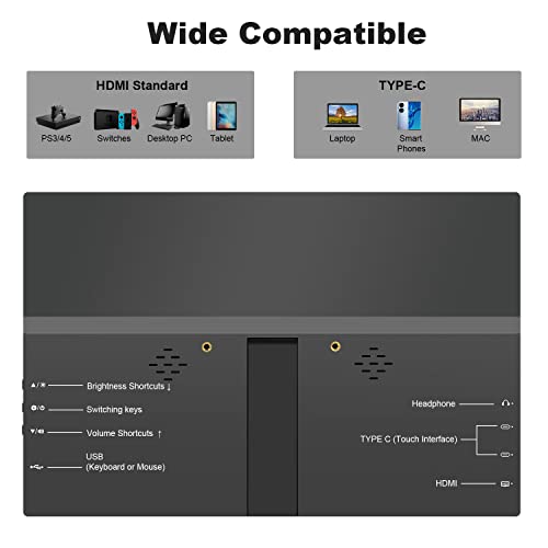 - 【Wide Compatibility】: Portable Display with HDMI, USB C ports make it easy connection with Laptops, PCs, Phones (Not include iPhone) , Gaming Devices, great ideal for extending your screen or playing games on business trip, travel, or home entertainment.