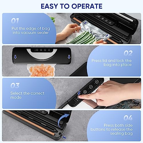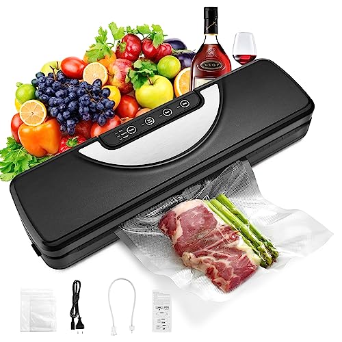 - 🥦【Complete Starter Kit】The vacuum food sealer machine comes with 5 x (4.7''x7.8'') vacuum bags, 5 x (7.8''x9.8'') vacuum bags, 1 x air suction hose and 1 x manual. One-button automatic completion from vacuuming to sealing, easy to operate. The removable sump allows for easy and safe cleaning of the sealer.
