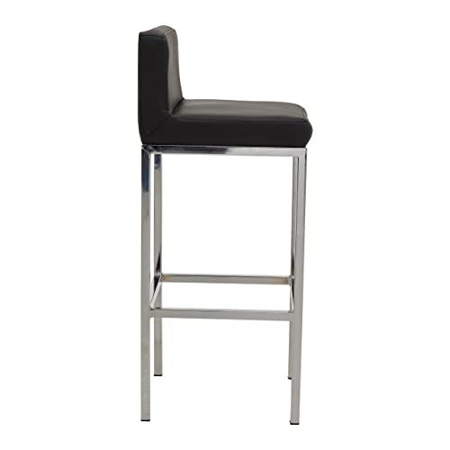 • Contemporary design, this bar chair has a black leather upholstery with chrome finish supporting legs, making it look modern.