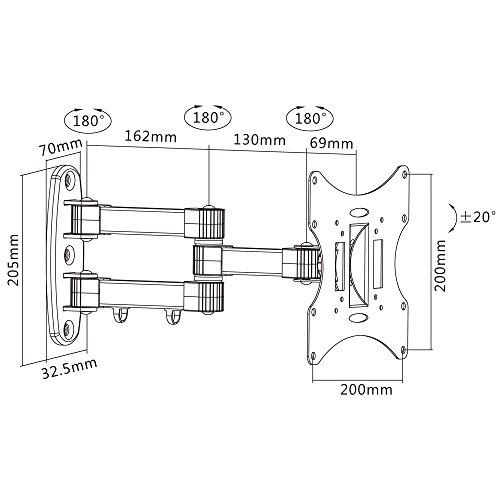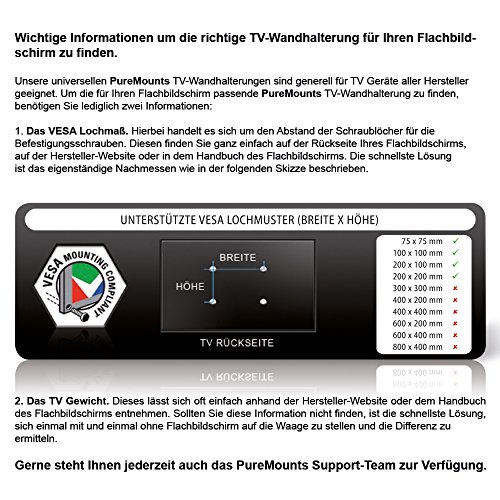 - VESA compatibility: 75x75, 100x100, 200x100, 200x200, for 37 inch