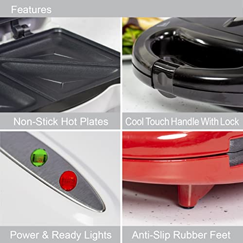 • NON-STICK – The hot plates that toast the bread are non-stick, meaning your hot sandwich will slide right out onto the plate once cooked. The toastie maker also features power and ready lights to indicate when your machine is at the optimum temperature to begin the toasting process.