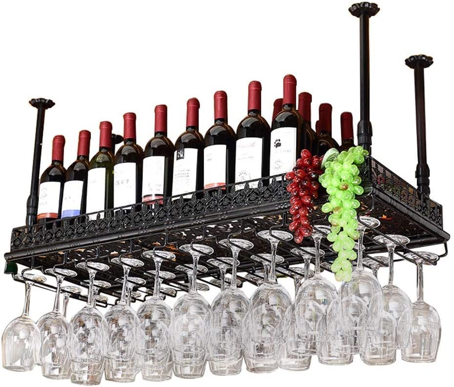 Home Home Bar Furniture Qunine Wine Rack Bar Wine Glass Rack, Hanging Upside Down Front Iron Racks, Lighted Ceiling Stemware Rack, Wine Rack Wine Cabinet (Black 100 * 35