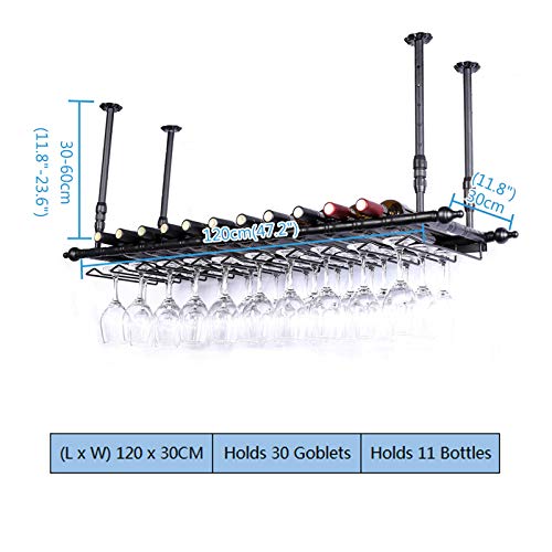 - 【ADJUSTABLE WIDTH, HEIGHT】The pole width can be adjusted for different situations. The 4 rods are suspended at the same time for safety and stability. Please don't worry if your ceiling is narrow. The height of the boom can also be adjusted in 30-60cm, so the height of the Wine Rack from the ground is adjustable.