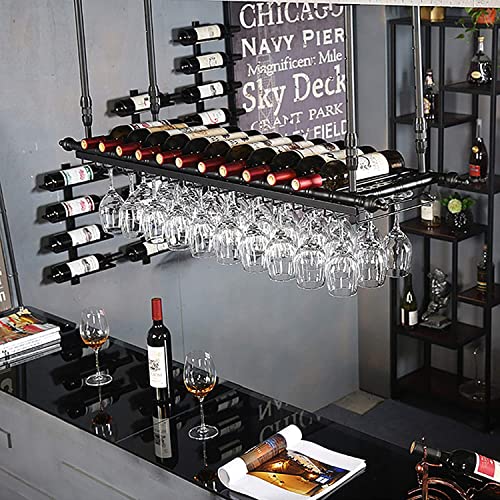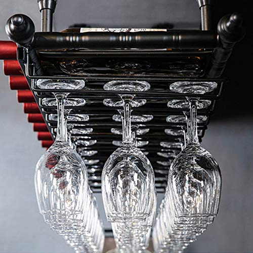 - 【HANGING WINE RACK】The large-capacity Ceiling Wine Rack design will allow you to place wine and glass in a variety of sizes conveniently. The structure after high-temperature baking can perfectly support them.