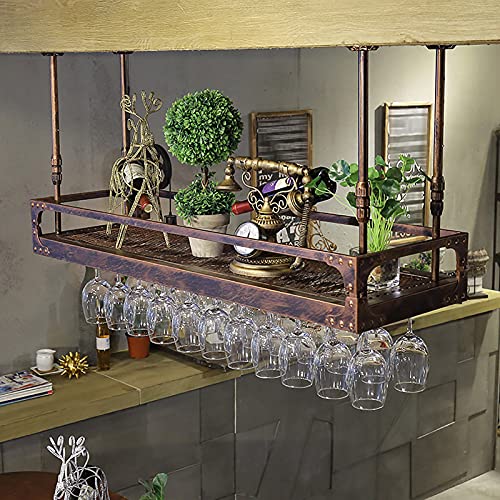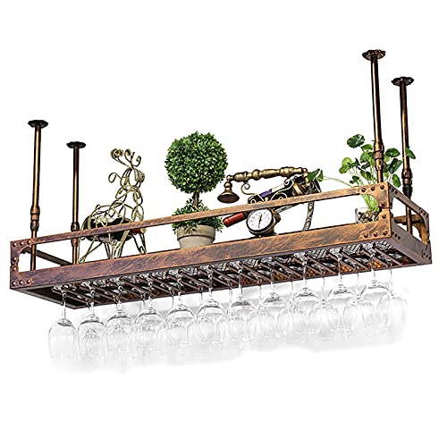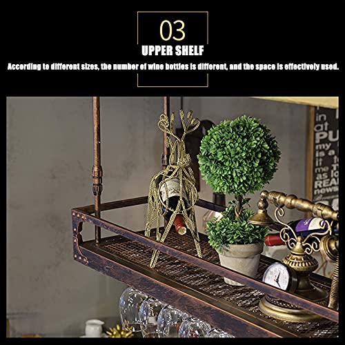 Home Home Bar Furniture Qunine Wine Rack Wall Mounted – Ceiling Wine Rack, Hanging Wine Rack, Vintage Display Wine Storage Holder with Stemware Glass Shelf for Under Cab