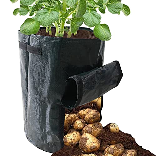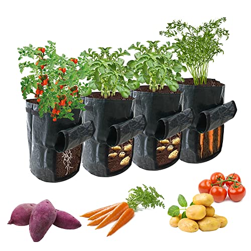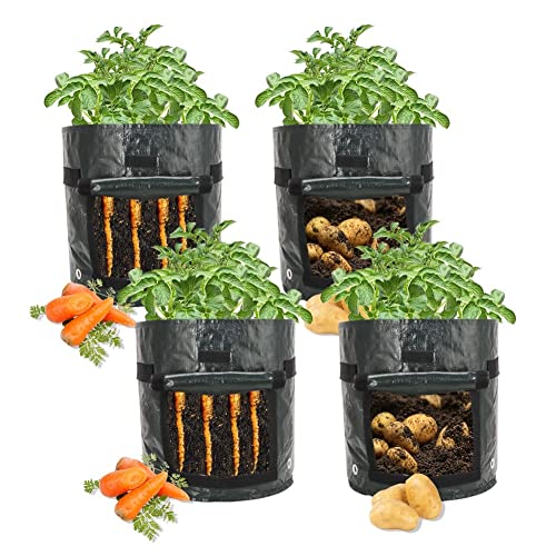 Home Garden & Outdoors Ram® 4 Pack 7 Gallon Potato Grow Bag set. Garden Plant Bags for potatoes, carrots, tomatoes, cucumbers and other Vegetables. Made in Green Polyet