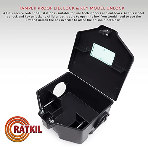 - SAFE FOR USE AROUND CHILDREN AND PETS (TAMPER PROOF): A fully secure rodent bait station that is suitable for use both indoors and outdoors. As this model is a lock and key unlock, no child or pet is able to open the box. You would need to use the keys and unlock the box in order to place the poison blocks/bait.