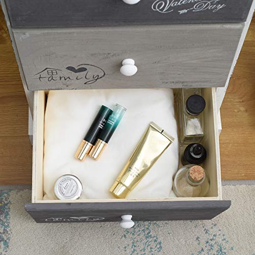 Home Bedroom Furniture Rebecca Mobili Nightstand Table 4 Drawers Chest Paulownia Wood White Grey Shabby Vintage Bedroom Bathroom – 72 x 35 x 27 cm (H x W x D) – Art. RE