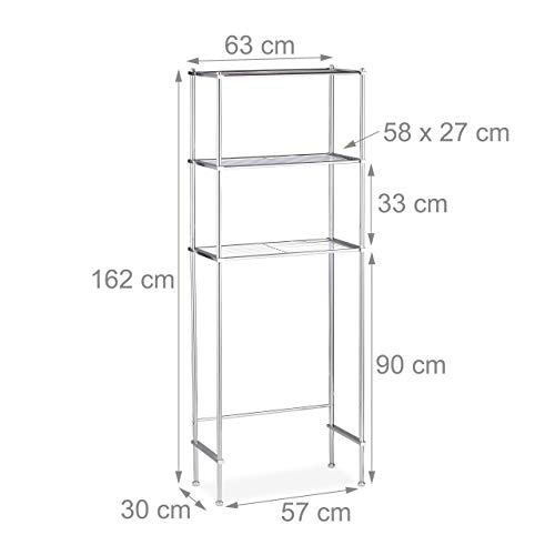 Home Bedroom Furniture Relaxdays Laundry Storage Shelf, Bathroom Rack with 3 Shelves, Chrome, HWD: 162 x 63 x 30 cm, Silver