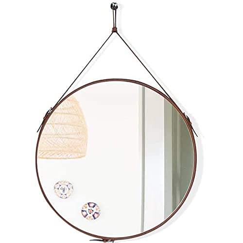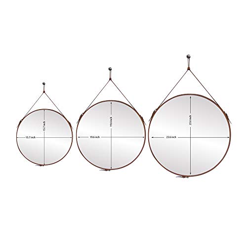 - The beautiful circle frame mirror is good quality with adjustable hanging strap. Additional silver hardware hook in packing,easy to hanging and have a great modern look with buckle details on the side.