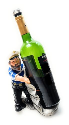 Home Home Bar Furniture Sailor Win Bottle Holder. Captain of a See Ship Carrying Alcohol for Home and Bar Decor. 7″x 4″ x 8″
