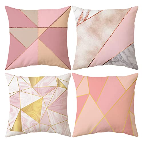 Shoppawhile Cushion Covers 45 x 45 Decorative Cushion Covers Set of 4 Throw Pillow Covers 18x18 Inch Cotton Pink Geometric Cushion Covers for Out