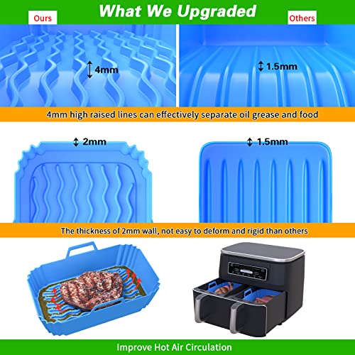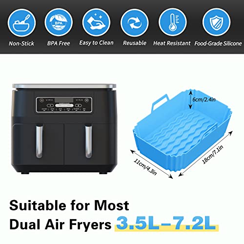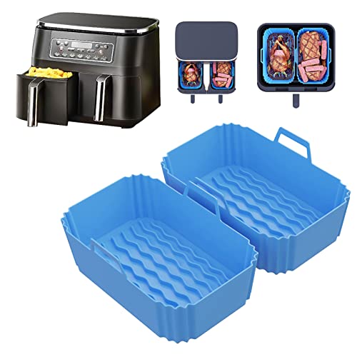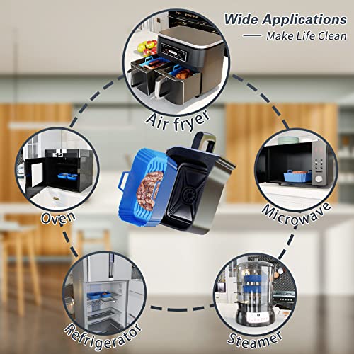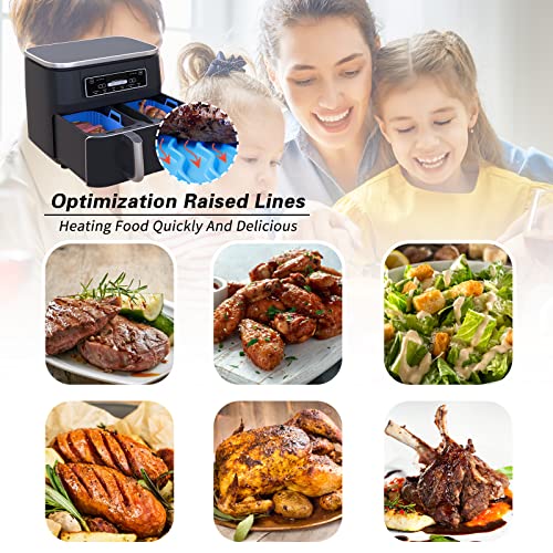 - 【Easy to Clean】Dual Air fryer liners adapt high-glossy inside treatment ensures that food won't stick to the surface, making it easy to get rid of residual oil or grease when cleaning. the air fryer silicone liner is soft and flexible, so you can easily flip it out and wash it by hand. it's dishwasher safe too.