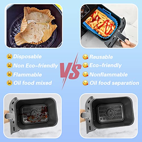 - 【Upgraded Design】Our air fryer liners silicone has an upgraded design that includes 4mm raised lines and wave corners. these features keep oil away from your food and improve air circulation for faster cooking. 2mm thick making air fryer silicone liners reusable sturdier , not easy to damage.