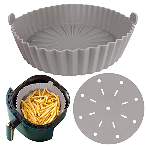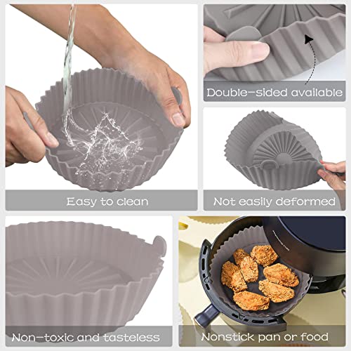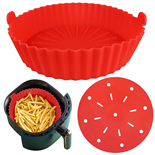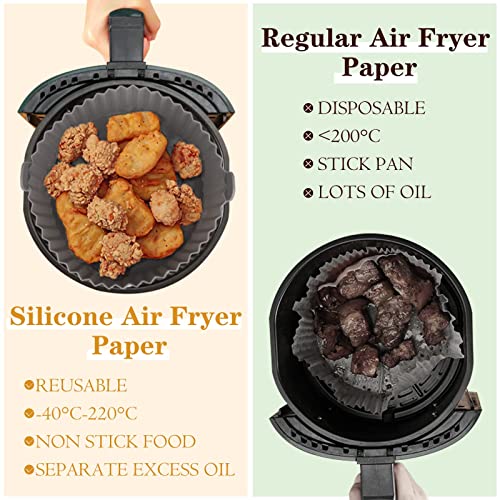 • 【Easy to clean】No need to wash the air fryer basket anymore. Reusable air fryer silicone liners help keep your air fryer free from grease, food debris and dirt. Our air fryer liner is non-stick and easy to clean. You can turn it inside out and rinse it easily. The silicone air fryer accessories are completely dishwasher safe, making cleaning the air fryer a breeze.