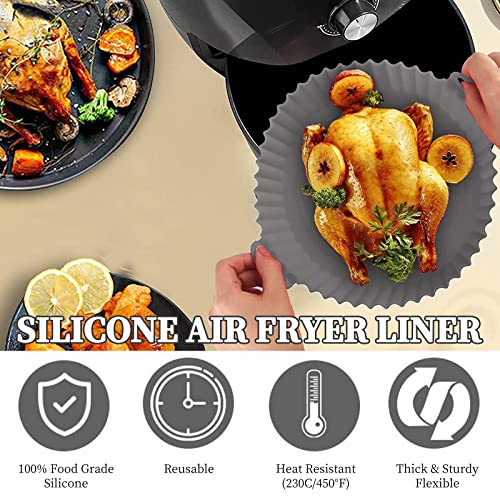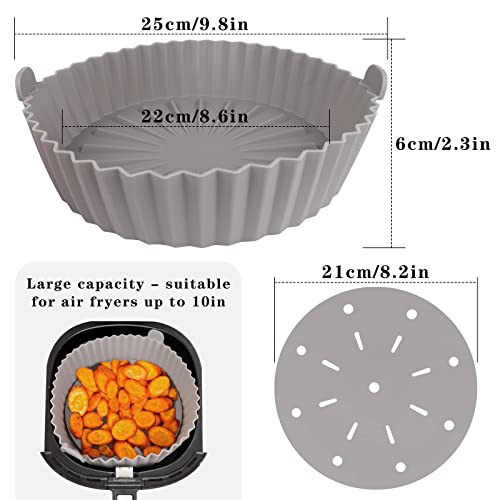 Silicone Air Fryer Liner, 26cm|10 Inch Reusable Air Fryer Liners with Non-Stick Mats, Round Large Air Fryer Liners, Food-Grade Air Fryer Basket f