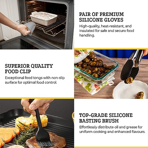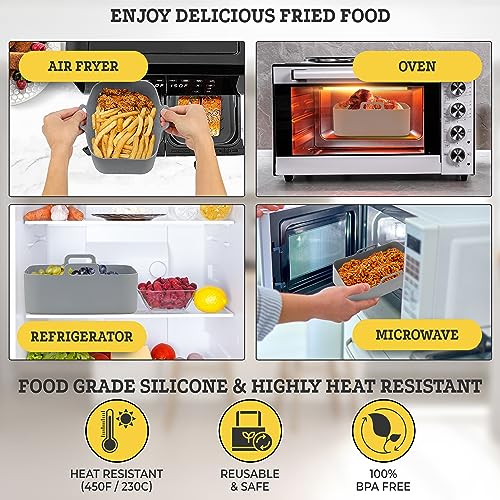 - 【Premium Heat-Resistant Food-Grade Materials】Our air fryer accessories are crafted from FDA-approved food-grade silicone and top-quality stainless steel. These materials are odorless, non-stick, non-toxic, scratch-resistant, and wear-resistant, ensuring 100% safety and healthiness. The silicone liner, gloves, and grill are designed to endure temperatures ranging from -40°F to 450°F. Furthermore, they are BPA-free, guaranteeing worry-free, enjoyable, and health-conscious cooking experiences.