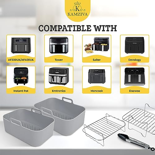 - 【Universal Compatibility】Specifically designed for Ninja AF400UK & Tower T17088 & AF300UK, and other dual air fryers, including the 9.5L model, this accessory set is also compatible with a variety of other air fryer brands. This ensures you can enjoy the benefits of our silicone liners and other accessories, no matter the model of your air fryer.
