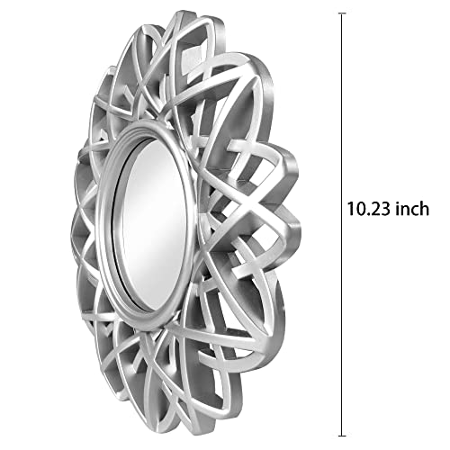 - 【SIZE&COLOR】 These stylish and adorable round mirrors diameter in 9.8inch(25cm), appropriate size to decorate different rooms, and are in the same color but diverse style to match various background, including white, brown, gery or floral.