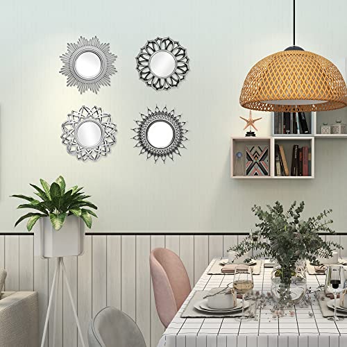 - 【WALL MIRROR SET of 4】 Each package comes with 4 small round wall decorative mirrors. You can hang them separately on several rooms or hang them all on the same wall to make the wall look unique and full. They can also go great with other wall decors in your living room, bedroom, dinning room, gallary, stairway or even garden area.