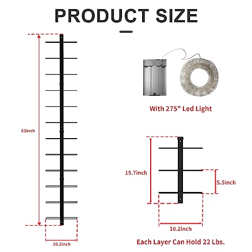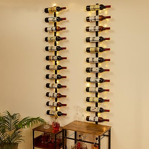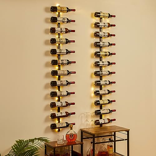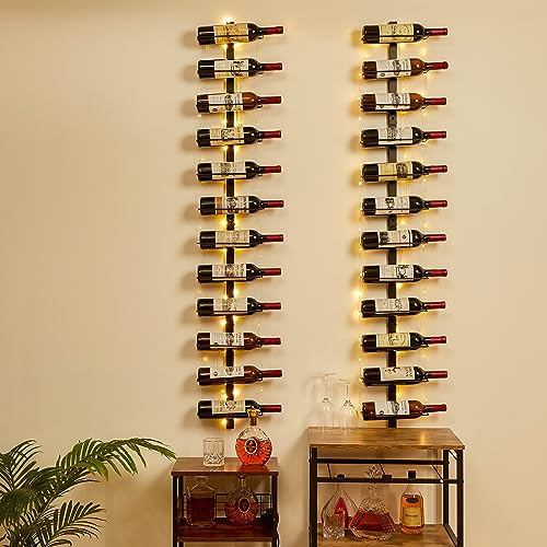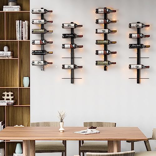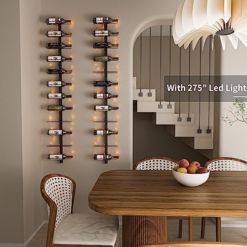 - 【LED Wall Mounted Wine Racks】: This wine rack comes with a 275 inches long light wire that highlights the appearance and labels of wine bottles, showcasing the colors of the wine and making the wine look more enticing and appealing. Additionally, it creates a romantic and cozy ambiance. (Note: Please prepare three AA batteries by yourself., and it's essential to decide the manner of wire placement before starting to avoid tangling the wires.)