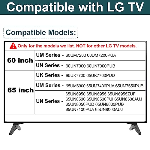 - --Compatibility-- TV Stand Legs for LG TV stand 60UM7200 60UM7200PUA 60UN7000 60UN7000PUB 65UK7700 65UK7700PUD 65UM6900 65UM7400PUA 65UM7650PUB 65UN6950 65UN6955 65UN6955ZUF 65UN8500 65UN8500PUI 65UN8500AUJ 65UN8050PUD 65UN8000PUB 65UN7100PUA 65UN9000AUJ. Part number: MAM643875. (âš Important Notes: NOT universal TV legs. NOT for other LG TV models. Only for the models we list.)