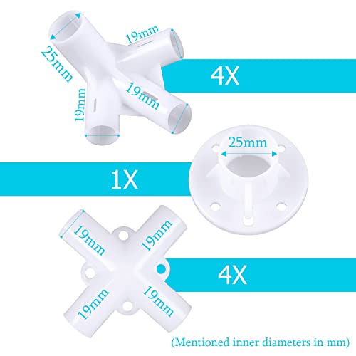 - 【Product parameter】The package include: Feet, center and corner connectors. 4 * Corner connections (inner diameter: 25/20/20/20 mm), 1 * Roof center connection (inner diameter:19/19/19/19 mm), 4 * Feets (inner diameter: 25 mm).