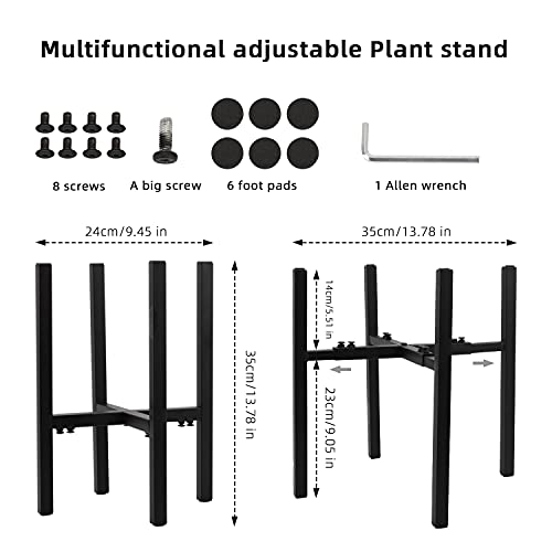• 🌴【Adjustable width】: The height of the metal bracket is 35cm(13.78 in) , and the inner diameter is 24cm (9.45in). It can be flipped and used to adapt to different flowerpot display needs, this bracket can be installed or adjusted within the range of 24-35 cm(9.45in ~ 13.78 in). Pots and plants are not included.