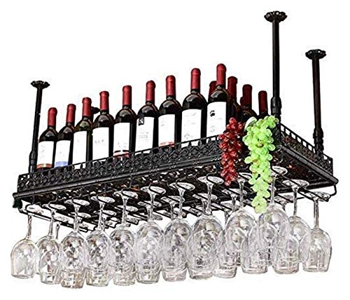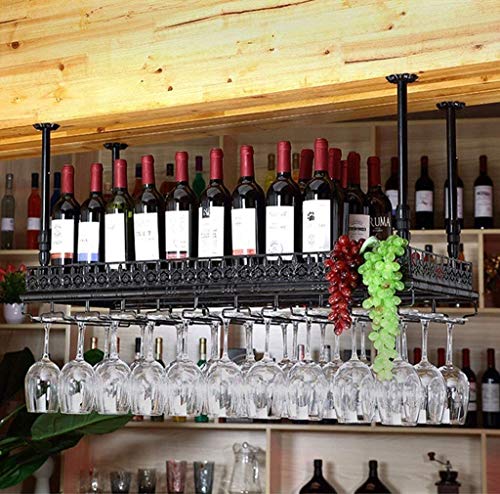 Home Home Bar Furniture SUCHETA Hanging Wine Rack with Glass Holder and Shelf, Wine lovers Bar furniture& Retro Metal Ceiling Wine Racks Storage Holder Wine Goblet Stemw