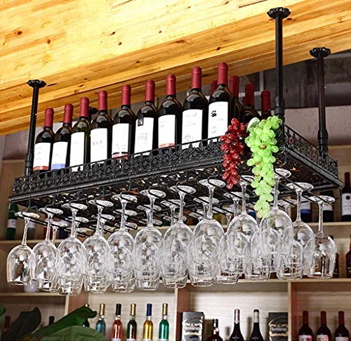 SUCHETA Hanging Wine Rack with Glass Holder and Shelf, Wine lovers Bar furniture& Retro Metal Ceiling Wine Racks Storage Holder Wine Goblet Stemw