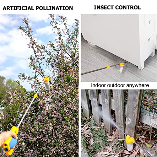 - Widely used: Use this powder sprayer to spray diatomaceous earth on bugs such as stink bugs, fleas, cockroaches, ants, earwigs, termites, aphids, spiders, etc., to achieve the desired effect. You can also use this powder sprayer for artificial pollination of fruit trees. Just put the male pollen into the cup, aim the nozzle at the flowers of the fruit tree, spray the pollen, and it can improve the flowering and fruiting rate of the fruit tree.