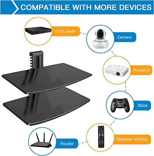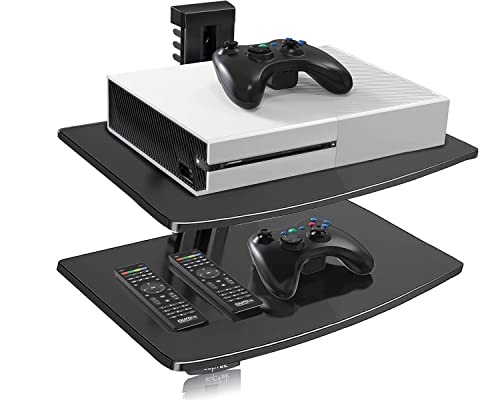 - ✍Durability✍our wall mounted shelf is built with one large strengthened tempered glass shelf (380x280x5mm each shelf), Designed for DVD/Blu-ray players, satellite/cable boxes, games consoles, hi-fi and surround sound speakers.