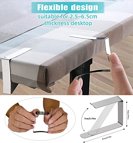 Product Description 12 pack Large Stainless Steel Table Clips for Table Cloth Outdoor Note: Recommended for 1-2.5" thick desktops of outdoor table.