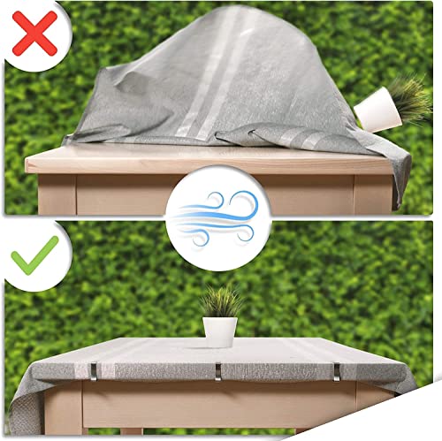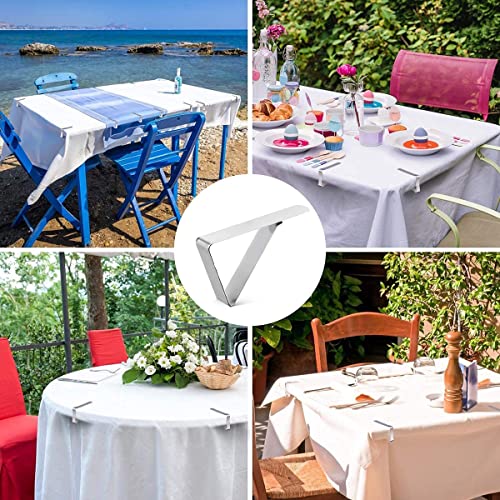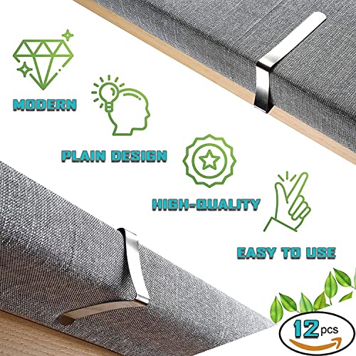- Material: pack of 12 stainless steel tablecloth clips that are ideal for picnic tables or dining room tables. </br></br>Tablecloth clips are made of stainless steel, durable and rust resistant.</br></br>Secures tablecloths to most picnic tables The stainless steel clips are more durable than plastic clips.