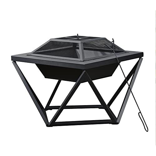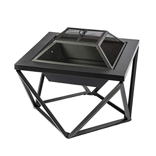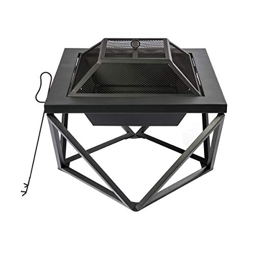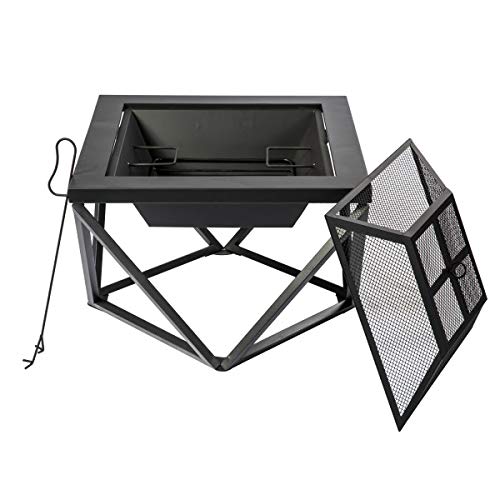 - "60CM WOOD BURNING FIRE PIT: Features a modern square shape and geometric metal base to add warmth and ambience to your backyard, patio, garden or any outdoor space. There is no need to prepare the ground with this firepit. "