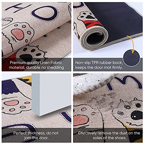 - 【Premium Quality】:Premium Linen Fabric Surface and Super Anti-slip Rubber Back. The surface of our entrance door mat is made of Linen Fabric, which can effectively remove the dust under your feet and keep your house clean. The back is made of high-quality rubber, which can effectively increase the friction between the mat and the ground, so as to achieve a good anti-slip effect.