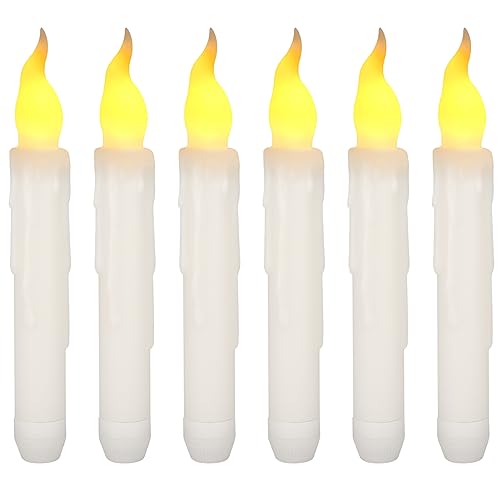 • 【REALISTIC APPEARANCE】- Diameter 0.79"D x 6.5"H which can fit a variety of taper candle holders and chandeliers. An excellent substitute for traditional taper candles. Set of 6 flameless taper candles are made of high-quality Ivory Plastic, Blinking slowly, looks beautiful and realistic.