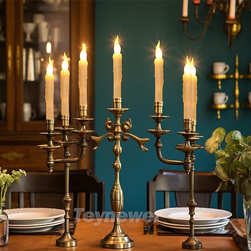 • 【MULTILE USAGE】- These realistic battery-operated taper candles come with warm yellow flickering flame, ideal for the dinner table, church, birthday, wedding, fireplace, Christmas, Halloween decoration.