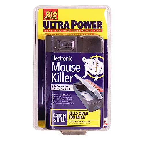 From the manufacturer EFFECTIVE RODENT CONTROL Bait & Kill: Our Ultra Power range offers the only true single-feed rodent poison available on the amateur market. The highly palatable formula contains a powerful active ingredient that delivers a lethal dose to rodents in just one feed. Catch & Kill: We offer a selection of versatile rodent trap solutions that are highly effective, with satisfaction guaranteed. Our powerful snap traps have been designed with durability in mind to be used again and again, whilst our innovative electronic products use smart-circuit technology to deliver a quick and humane kill. Pet-safe and child-safe options are available. Catch Alive: Safe for use around children and pets, these traps provide a humane, welfare-friendly alternative to lethal methods. Our professional-quality traps have been designed with safety in mind, both for the user and the target pest. Self-setting multi-catch mechanisms and fast-action closures allow for efficient rodent trapping and are ideal for large rodent infestations. Repel: 24/7 protection and peace of mind - our advanced mega-sonic repellers will protect your home around the clock, ridding your home of rodent pests and preventing their return. Poison-free and safe for use around children. Clean kill in seconds LIKE THE PROFESSIONALS USE RODENT CONTROL Our on-pack pledge is "satisfaction assurance" reassuring you that the high-performance Ultra Power products from The Big Cheese will deliver effective results every time! The Big Cheese Ultra Power range delivers home-use rodent control solutions that are effective - JUST LIKE THE PROFESSIONALS USE. Professional-quality products you can trust. Experts in rodent control for over 25 years. Ultra Power Electronic Mouse Killer from The Big Cheese Quick, effective and humane. The Ultra Power Electronic Mouse Killer from The Big Cheese is an effective and humane way to catch and kill mice in indoor areas – like the professionals use. Ergonomic electrical plates sense when a mouse enters the trap, delivering a high-voltage charge that kills in seconds once the mouse is enclosed within the unit. The semi-transparent lid makes it easy to identify a successful kill and the catch can be disposed of by simply opening the lid – no mess, no fuss. Kills 100+ mice per set of AA batteries (not included). Clean kill in seconds. Semi-transparent window for quick and easy kill verification. Low battery indicator. Safe to use around children and pets. Bait with The Big Cheese Fresh 'n Tasty Rat & Mouse Attractant purchased separately. Part of the ULTRA POWER range. Kills in seconds Ergonomic electrical plates sense when a mouse enters the trap, delivering a high-voltage charge that kills in seconds once the mouse is enclosed within the unit. Satisfaction assurance High-performance Ultra Power products from The Big Cheese will deliver effective results every time! Child and pet safe An internal micro-switch, together with built-in safety features makes this trap safe to use in areas around children and pets. Reusable Kills over 100 mice from a single battery set. Easy to set, easy clean and reset. To increase catch rates, bait trap with The Big Cheese Fresh 'n Tasty Mouse and Rat Attractant (purchase separately). Guaranteed effective rodent control Mice Mice are a highly adaptive and invasive species and they’re able to populate a variety of ecosystems. Agricultural fields, buildings, and boats are all viable habitats. In more temperate climates there will be even more possible nest sites. Swimming, climbing, jumping proficiency, and the two incisors on their upper jaw, all make for a formidable predator wherever they reside. However, despite all of these amazing abilities, the house mouse chooses to reside, as its name would indicate, in a home. House mice (Mus Musculus Domesticus) are a highly adaptive member of the genus Mus (mouse), yet for some reason they choose to live in the least demanding environment, a human home. They are attracted by the continuous flow of food and warmth, ideal for nest sites. The offer of food and shelter is so tempting that many choose to stay and breed year-round. Diet As one can imagine, the palate of a house mouse is highly adaptable since every habitat they migrate through will hold different opportunities for feeding. Outside dwellers will eat insects and a lot of grain, however, inside dwelling mice are practically omnivorous and, just like brown rats, will consume 10-15% of their body weight each day in just about anything we throw away. Most house mice will nibble on multiple different food sources to obtain their required nutrition, up to 20 times each night, since they’re nocturnal. A large proportion of a mouse’s 3g daily intake will be grain, namely cereal, favouring high-energy, man-made foods. Studies have proven that the levels of aggression in both rats and mice can be attributed to this high fat ‘human’ diet they have both been on for so long. These foods increase oestrogen levels and results in a shorter temper and longer periods of aggression. Evidence of intrusion 3-6 mm long droppings, black and rod-shaped. Approximately 80 per day, often appearing in clusters. Spotted in various places including attics, storage boxes, floorboards, disused cupboards. Check around fridges, ovens, heating units and washing machines too. Check wood, paper, cables, carpet and furniture for marks. Dark grey marks on surfaces from oil on hair. Although they don’t sweat, they emit a musky odour and urinate a lot, producing an ammonia smell. Hearing pattering feet in walls at night could be a sign of a mouse or rat infestation. If your dog is barking at night at what seems to be nothing, it could be picking up the scent or sounds of rodents. Ultra Power All-Metal Mouse Traps - Twin Pack Ultra Power Mouse Traps - Twin Pack Ultra Power Mouse Trap Kit Ultra Power Multi-Catch Mouse Trap Ultra Power Electronic Mouse Trap Ultra Power Anti Rodent Lacqer Target p