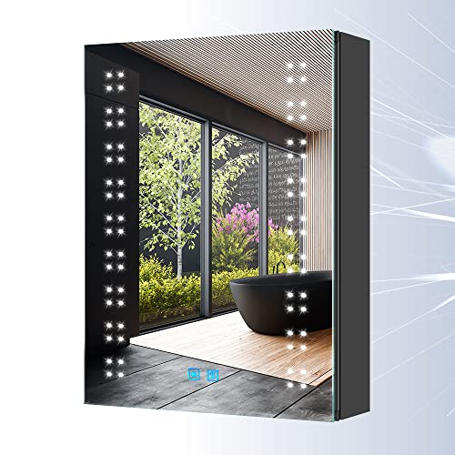 Home Bathroom Furniture TokvonĀ® Twinkle BLACK Bathroom Mirror Cabinet Wall Mounted with dual plug shaver socket LED Light Anti-fog Demister Adjustable Dimmer 500 x 700mm