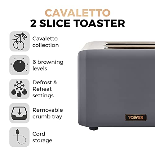 - Product 2: CAVALETTO COLLECTION: Contemporary 2-slice toaster with Matte Grey finish and elegant Rose Gold accents adds style to your kitchen. Part of the co-ordinating Cavaletto collection from Tower
