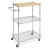 - Made with a heavy-duty, chromed steel frame and shelves