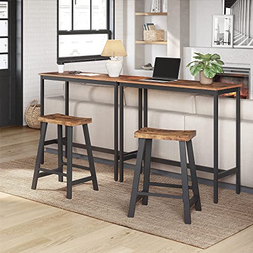 VASAGLE Bar Stools, Set of 2, Saddled Seat, Sturdy Steel Frame, 60 cm High, for Kitchen, Dining Room, Office, Industrial Style, Rustic LBC074B01,